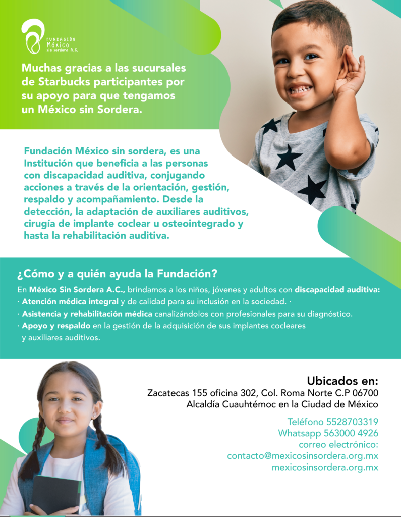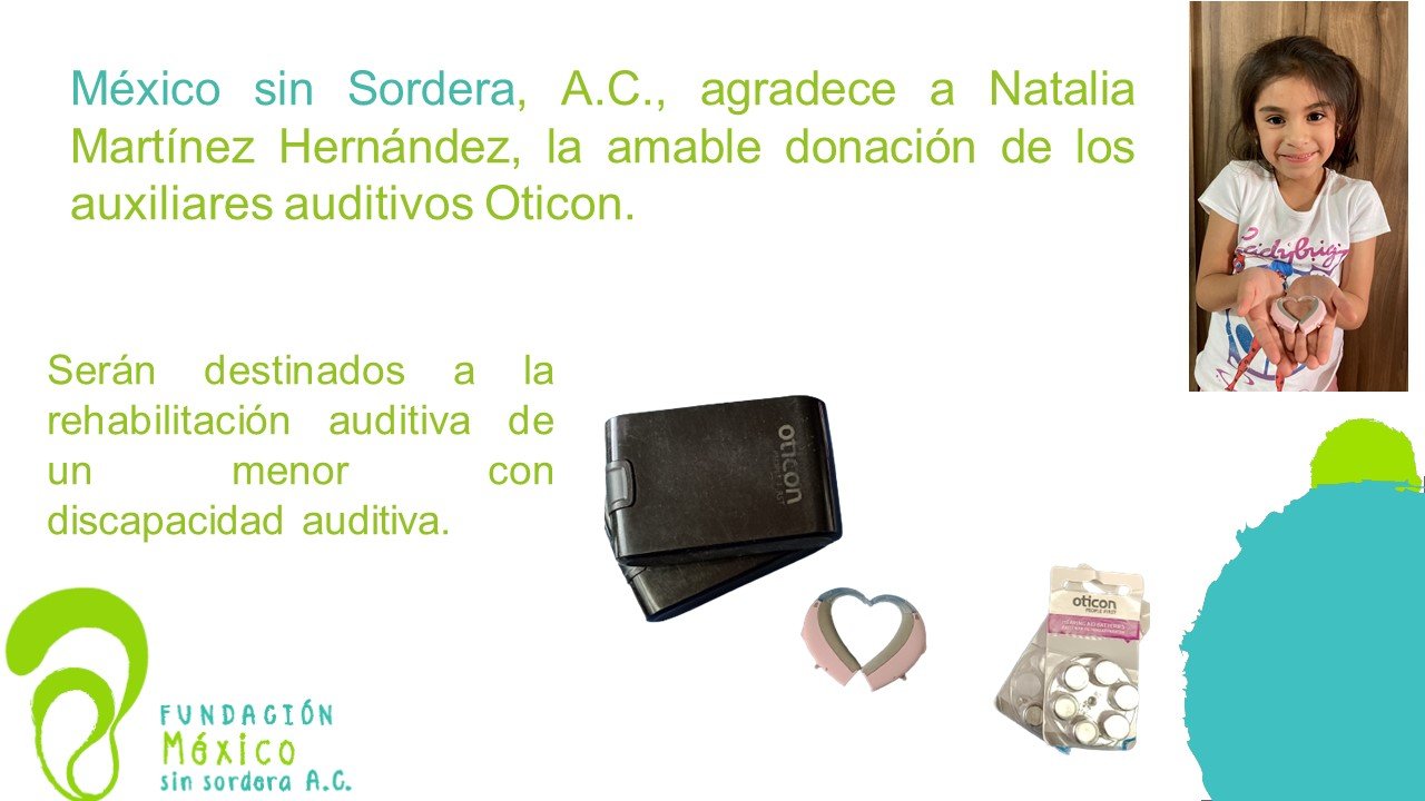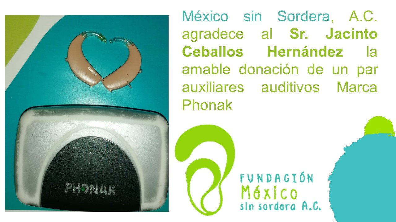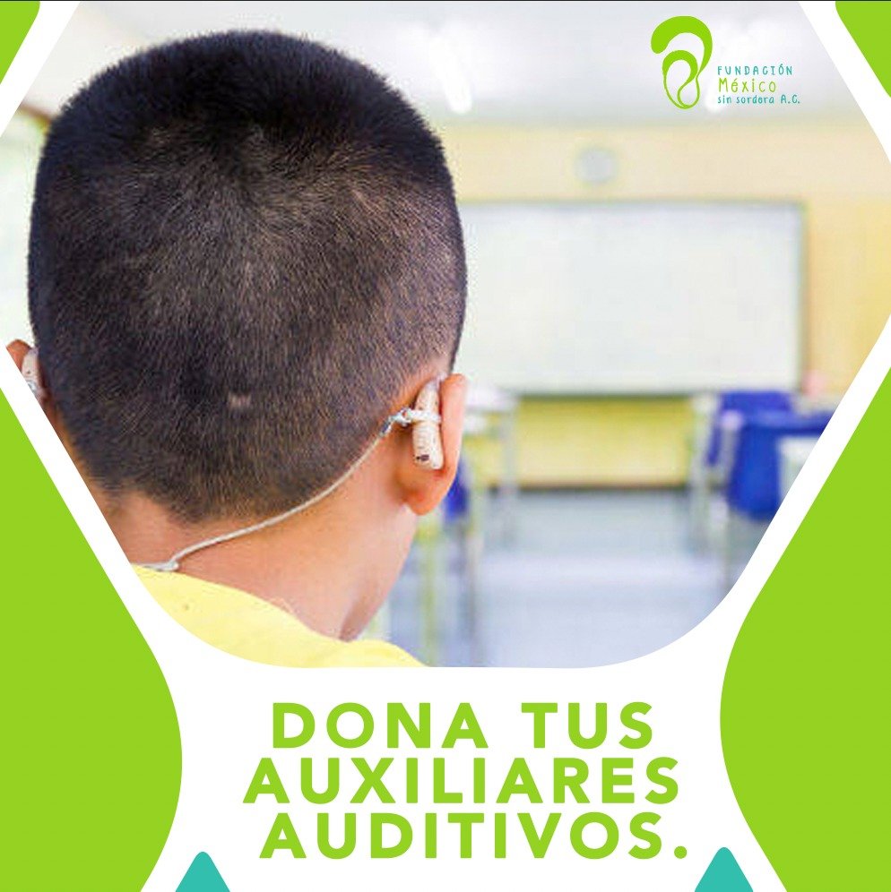 Si cambias o no utilizas tus auxiliares auditivos, puedes donarlos a la Fundación México sin sordera, A.C. y ayudarnos a que más niños, jóvenes y adultos escuchen los sonidos de la vida.