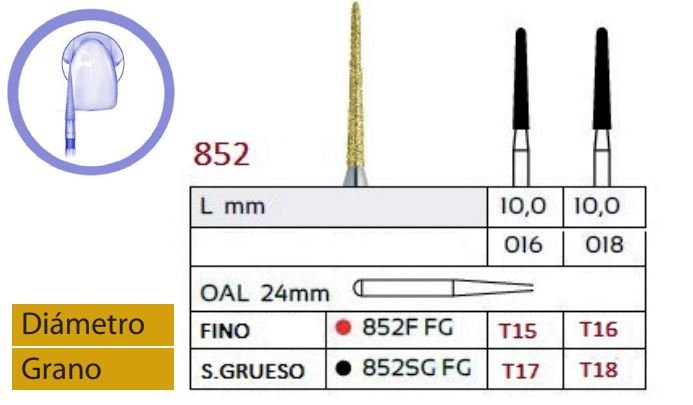 852 Fresa de Diamante Dorada CHAFLAN CONICO REDONDEADO alta velocidad