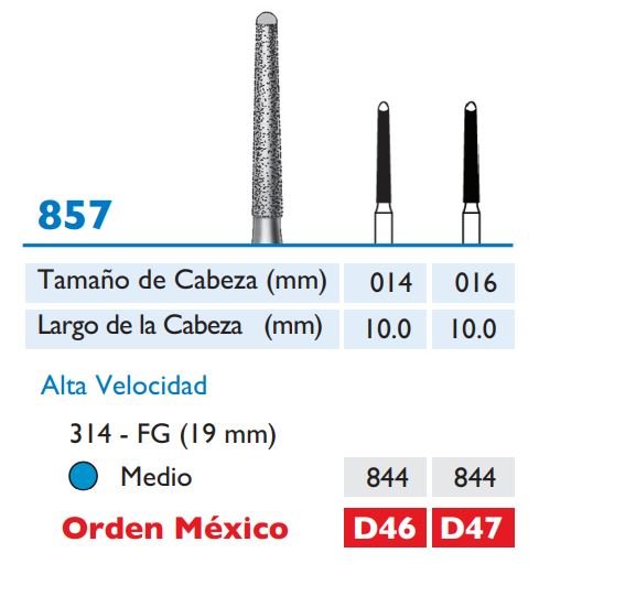 857 Fresa de Diamante de PUNTA REDONDEADA SIN CORTE EN PUNTA alta velocidad