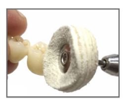Gamuza montada y fabricado en hojas de piel de gamuza. Indicado especialmente para el proceso de pulido y abrillantado de todo tipo de materiales dentales..