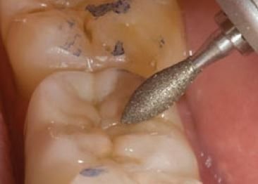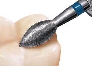 Sistema de ajuste oclusal diseñado con fresas de forma de huevo de carburo y diamante para modificar las superficies oclusales para mejorar el patrón de contacto, eliminando selectivamente estructura dentaria.